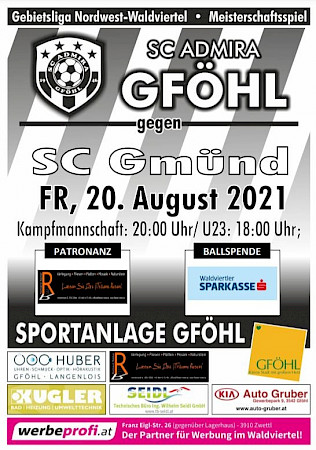 Diese Woche wartet beim ersten Heimspiel in Gföhl mit Gmünd ein echter Gradmesser auf unsere Teams. Spielbeginn ist um 18 Uhr (U23) und um 20 Uhr (KM). Wir freuen uns auf zahlreiche Zuschauer beim Saisonauftakt in Gföhl! :-)
